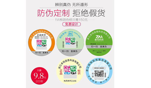 微信防伪标签制作就如给企业产品配备一个独立、加密并且数据可变的二维码,张贴着绝无仅有的防伪标签标志。防伪的微信防伪标签技能有着二维码不易仿制、不易转移特色,很好的根绝仿冒批量的出产。